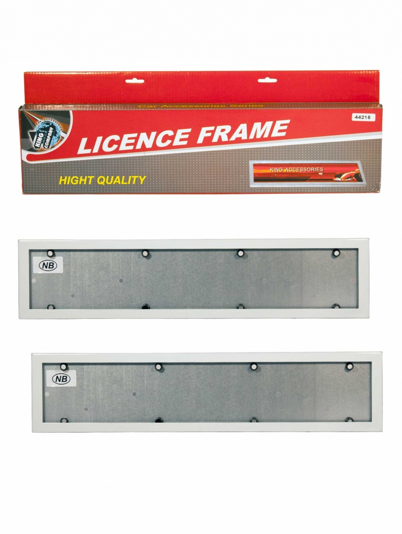 Рамка номерного знака "King" металлическая с силиконовой прокладкой (с набором для крепления, 21 предм.), белая, 2 шт.