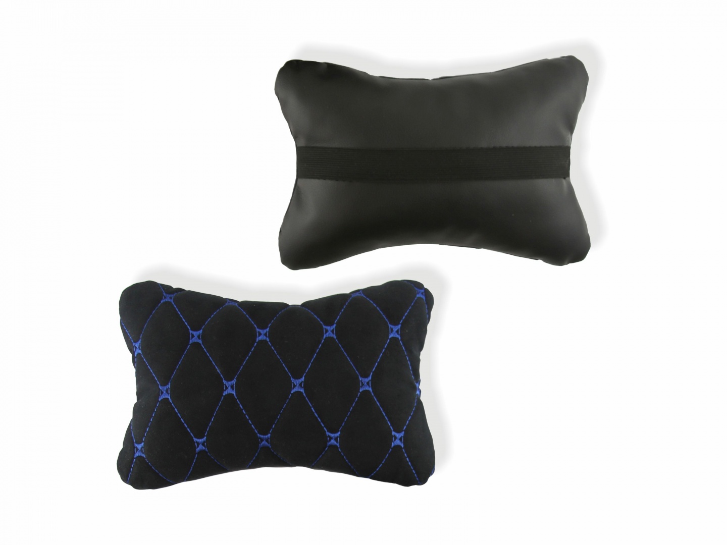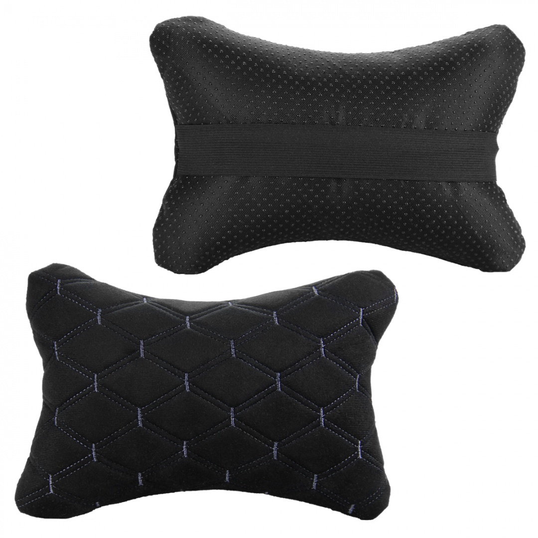 Подушка-подголовник на сиденье "косточка", черная с прострочкой синей ромбиками (26х17см)