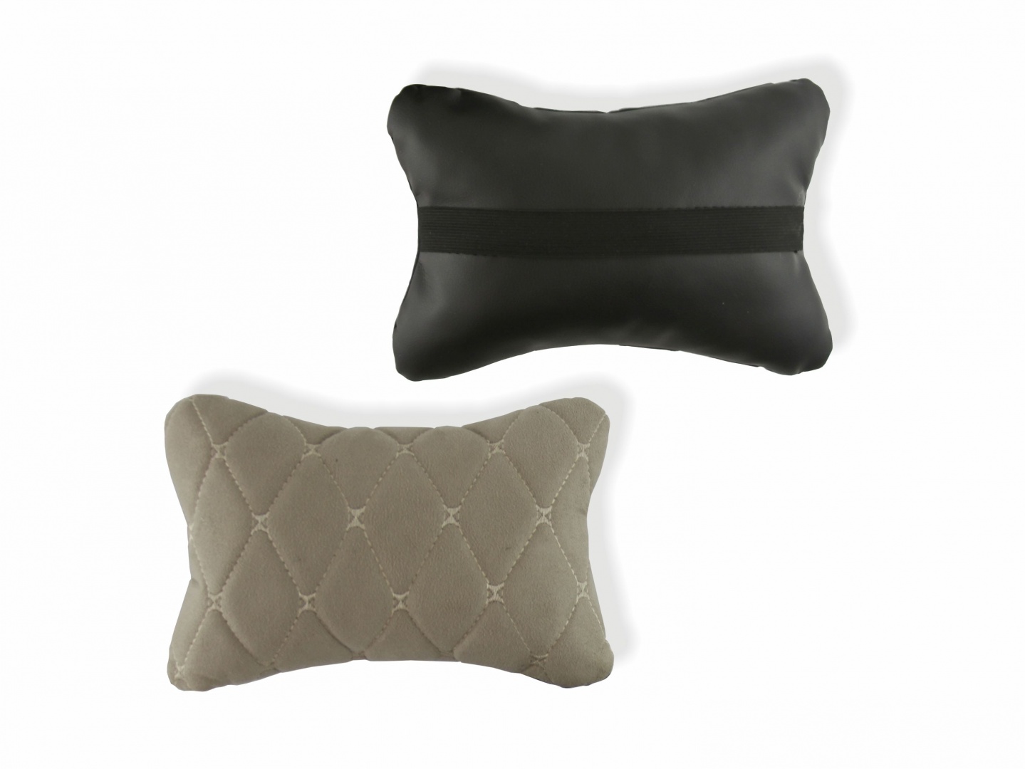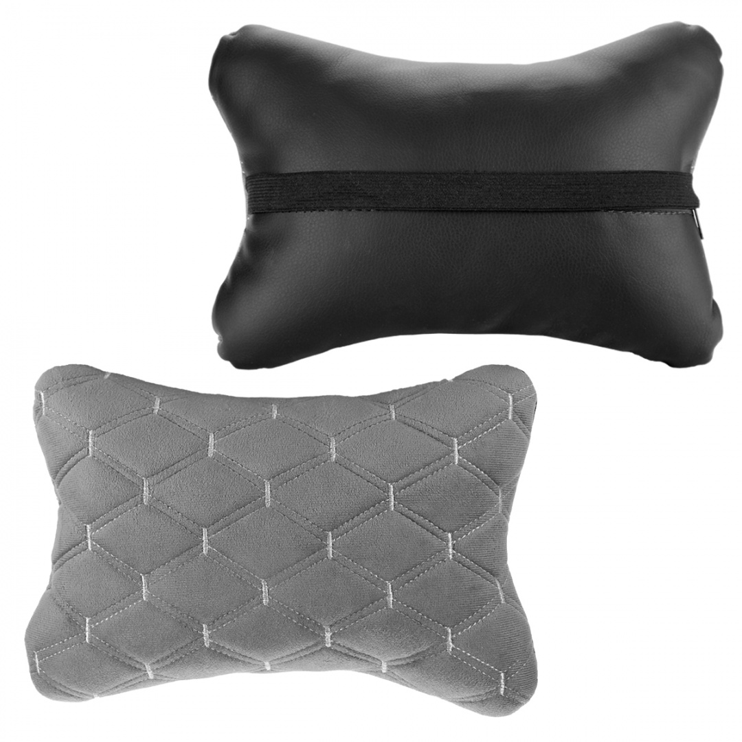 Подушка-подголовник на сиденье "косточка", серая с прострочкой серой ромбиками (26х17см)
