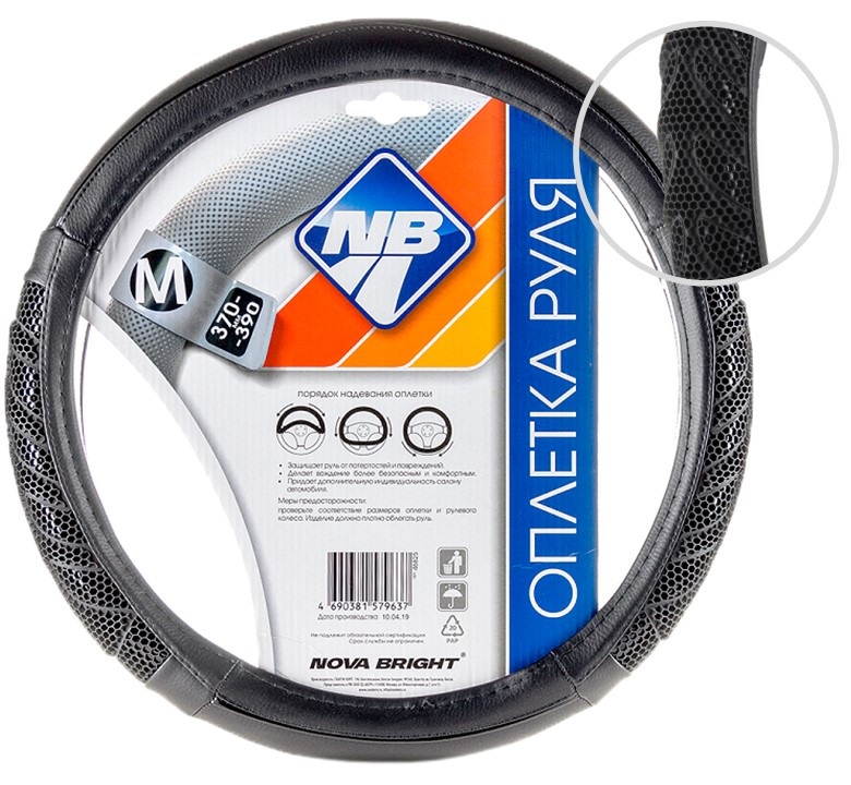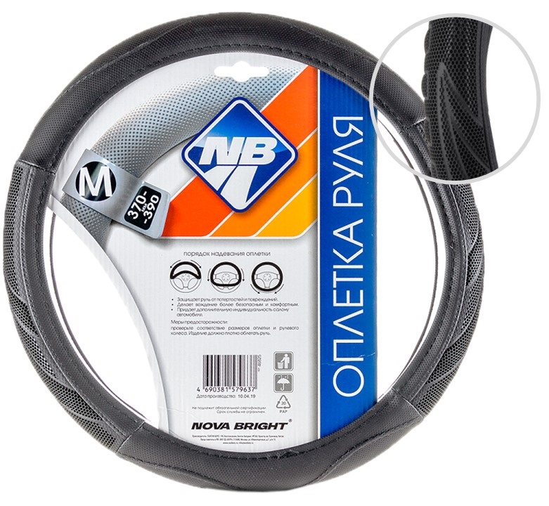 Оплетка рулевого колеса "Nova Bright" (M) черная с черными массажными вставками