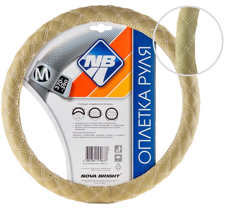 Оплетка рулевого колеса "Nova Bright" (M) экокожа, бежевая с прострочкой ромбиками