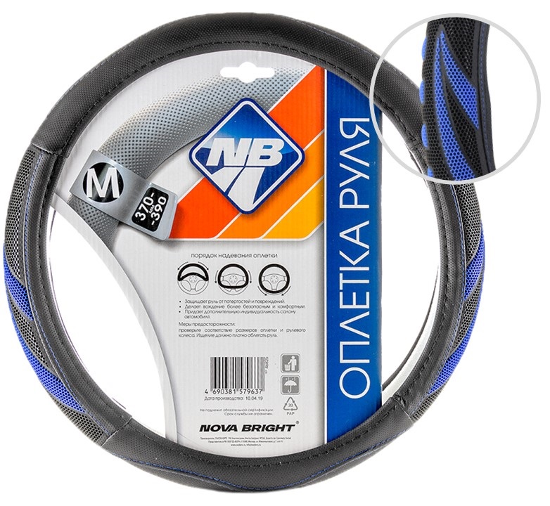 Оплетка рулевого колеса "Nova Bright" (M) с синими массажными вставками, черная перфорированная