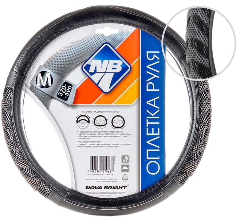 Оплетка рулевого колеса "Nova Bright" (M) с черными массажными вставками, черная перфорированная