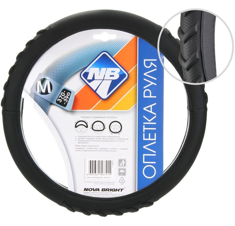 Оплетка рулевого колеса "Nova Bright" (М) экокожа, черная с фигурным тиснением